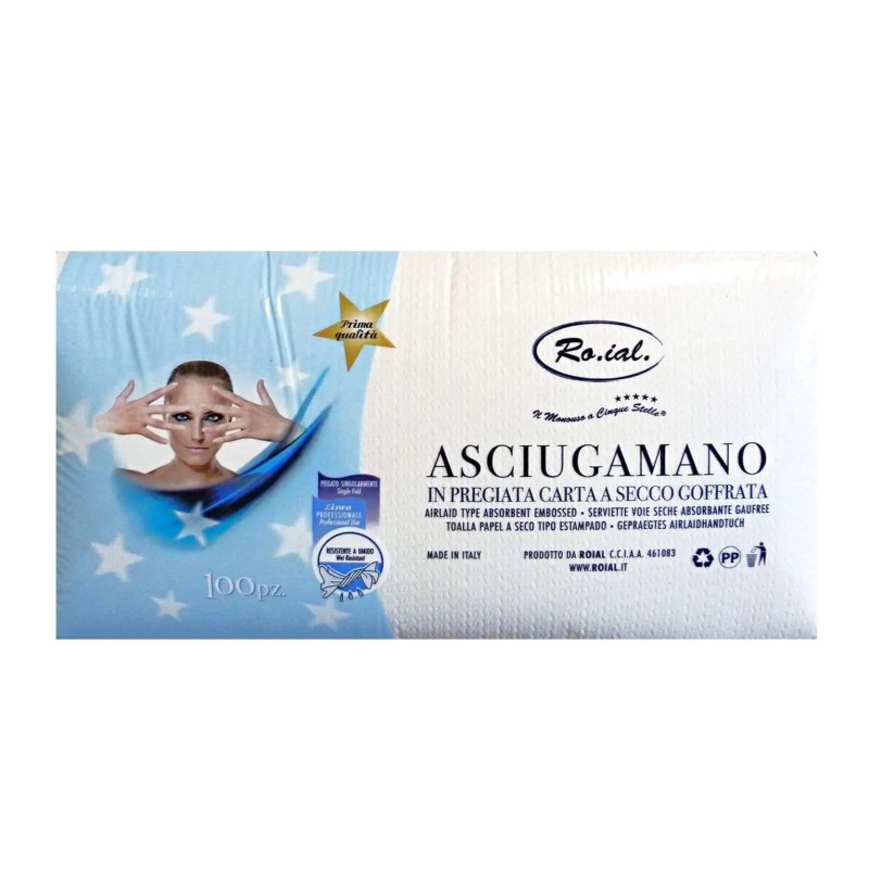 Asciugamani in pretagliata carta a secco, piegato singolarmente. I prodotti monouso della Roial sono resistenti e di ottima qualità.